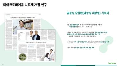 - 염증성 장 질환의 인간 유래 마이크로바이옴 치료기술 개발 사업에