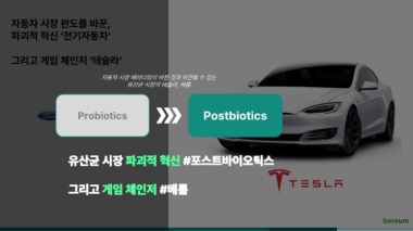 자동차 시장 판도를 바꾼, 파괴적 혁신 ‘전기자동차‘ 그리고 게임 체인저 ‘테슬라‘ 자동차 시장 패러다임이 바뀐 것과 비견될 수 있는 유산균 시장의 테슬라, 베름 Probiotics … Postbiotics 유산균 시장 파괴적 혁신 #포스트바이오틱스 그리고 게임 체인저 #베름