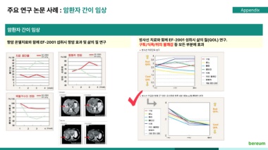 주요 연구 논문 사례 : 암환자 간이 임상 Appendix 암환자 간이 임상 방사선 치료와 함께 EF-2001 섭취시 삶의 질(QOL) 연구. 항암 온열치료와 함께 EF-2001 섭취시 항암 효과 및 삶의 질 연구 구토/식욕/위의 불쾌감 등 모든 부분에 효과