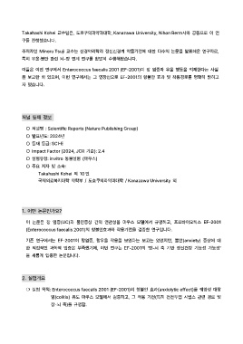 (Enterococcus faecalis 2001)의 항불안효과와 작용기전을 검증한 연구입니다.