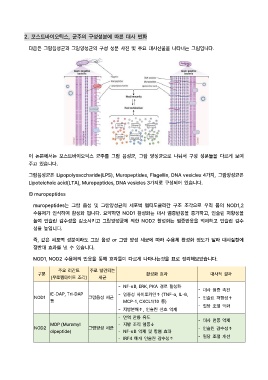 NOD1, NOD2 수용체의 반응을 통해 효과들이 다르게 나타나는것을 표로 정리해보았습니다.