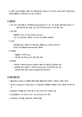 • 수용체작용 분석: GABA-A 수용체 flumazenil 결합, 전기생리학적 신호 측정