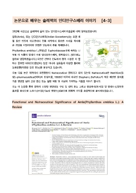 오늘 이 논문을 통해 암라의 다양한 영양성분 구성 및 생리 효능 그리고 항산화·항염·지질 및 당대사·신경보호