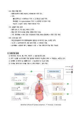 - 동물·임상에서 혈당, HbA1c, HOMA-IR 지표 감소.