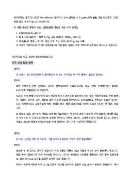 유익하다는 결과가 나왔고 Mozaffarian 연구자도 ALA 섭취를 2–3 g/day까지 늘릴 것을 제안했고, CVD
