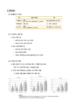 ○ 많은 환자가 T1~T2 사이 증상 악화 → 중증군으로 이동,