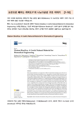 특히, Yoo et al.(2025)이 Water에 발표한 「Diatom Biosilica: A Useful Natural Material for Biomedical