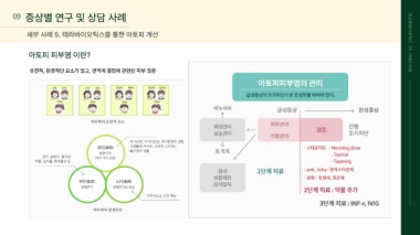 09 증상별 연구 및 상담 사례 세부 사례 5. 테라바이오틱스를 통한 아토피 개선 포스트바이오틱스 아토피 피부염 이란? 1조 시대의 유전적, 환경적인 요소가 많고, 면역계 결핍에 관련된 피부 질환 이해
