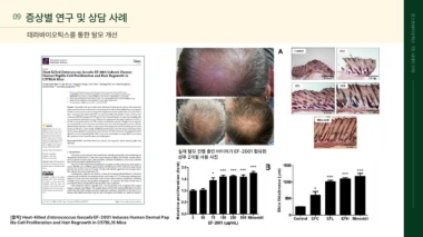 09 증상별 연구 및 상담 사례 테라바이오틱스를 통한 탈모 개선 포스트바이오틱스 1조 시대의 이해 실제 탈모 진행 중인 바이어가 EF-2001 함유된 샴푸 2개월 사용 사진 [출처] Heat-Killed Enterococcus faecalis EF-2001 Induces Human Dermal Pap illa Cell Proliferation and Hair Regrowth in C57BL/6 Mice